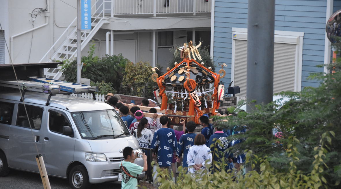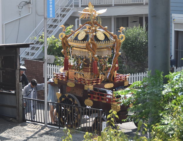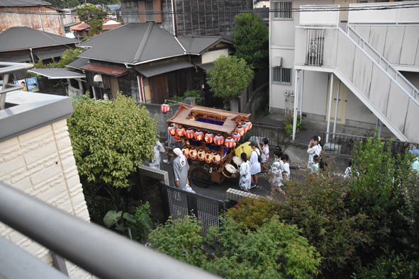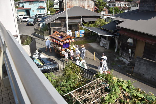14時40分頃、諏訪神社例大祭、笛や太鼓が東り町を進みます。