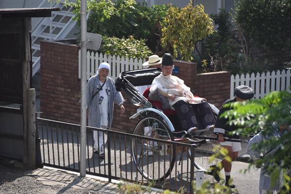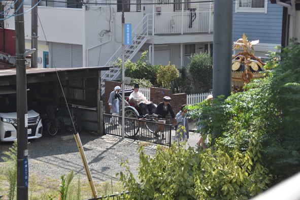 神輿に続き、神主さんは人力車で進みます。2008年頃は乗馬でしたが、2008年頃の諏訪神社例大祭はここをクリック