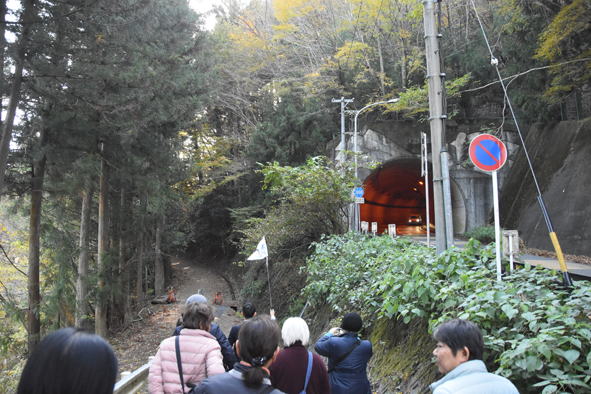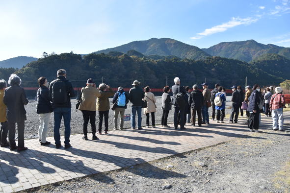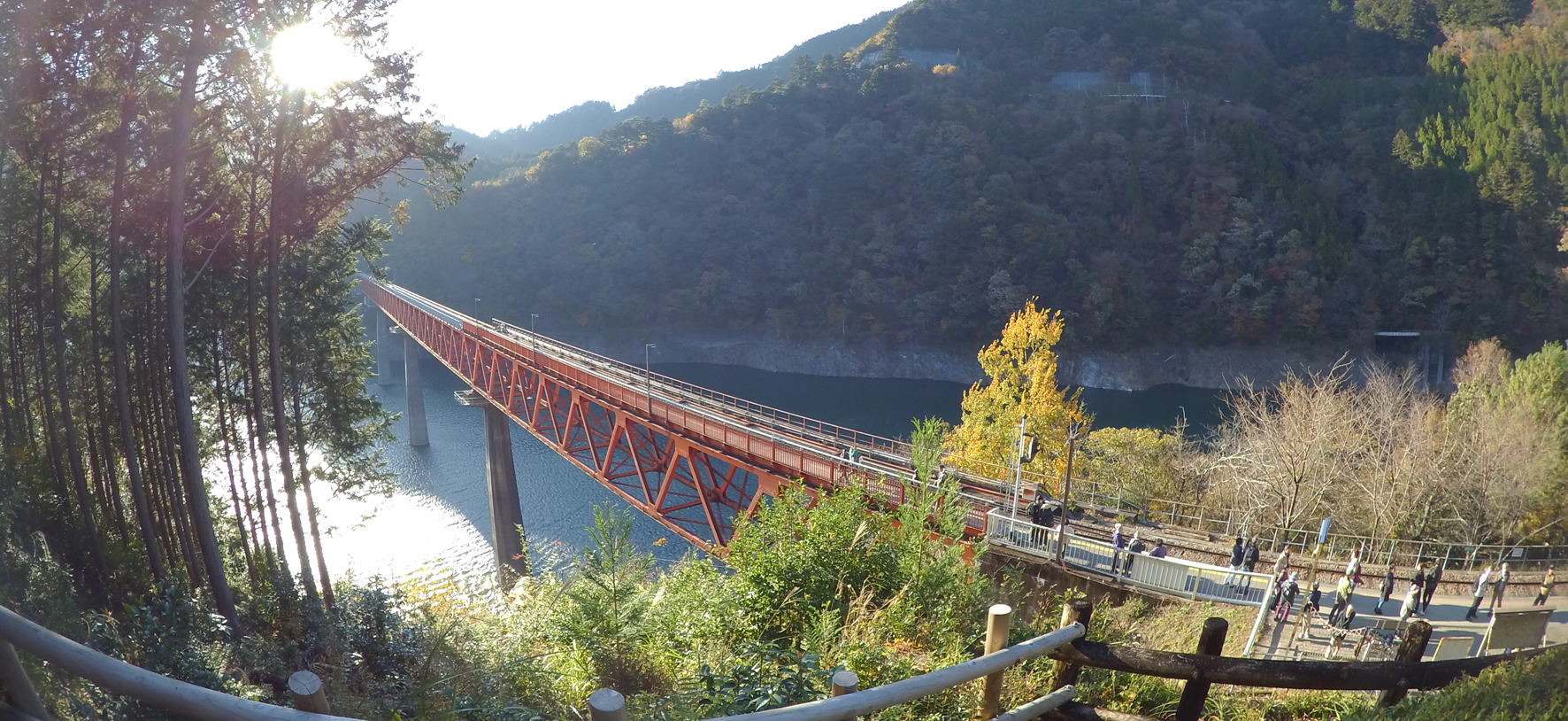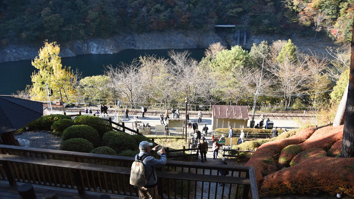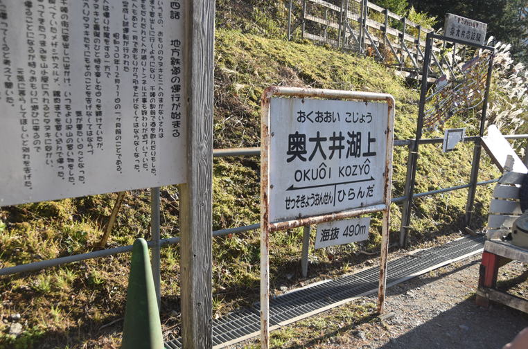 奥大井湖上駅展望所近くへ到着です。徒歩で展望所へ。14時5分頃でした。