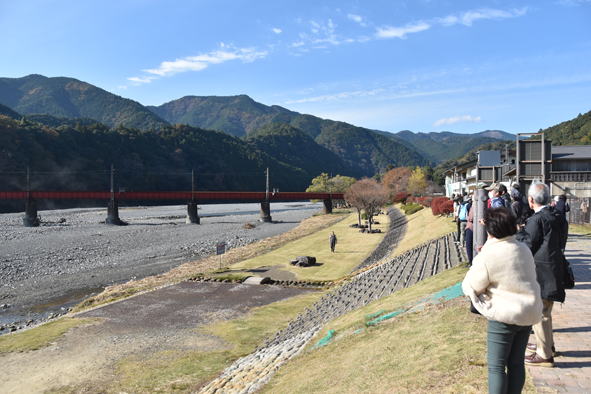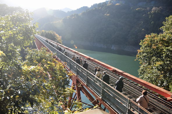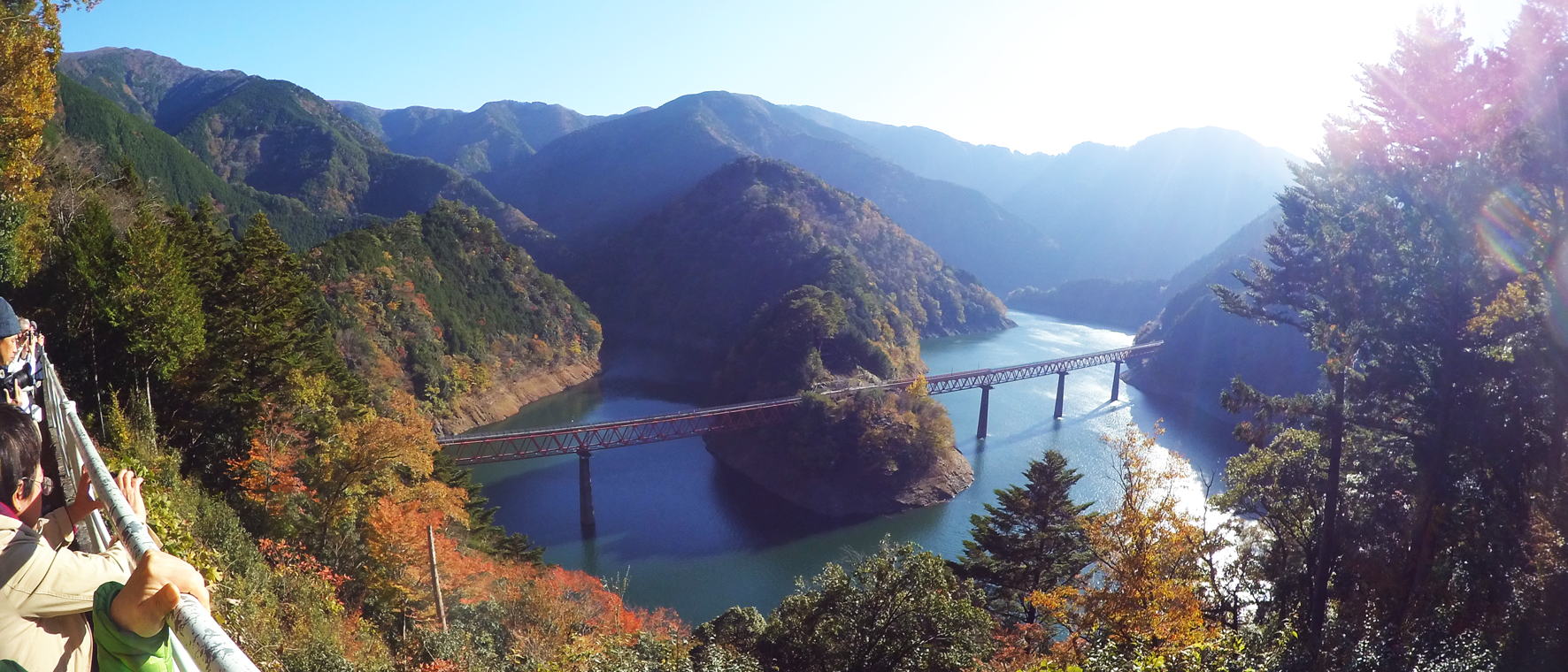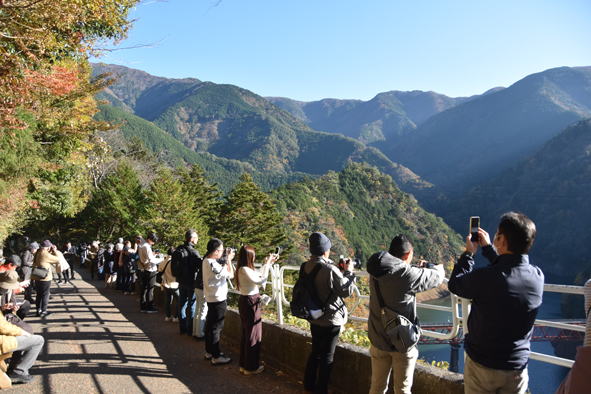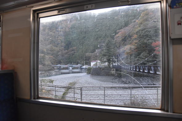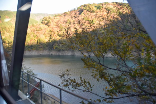 静岡駅からバスにて大井川鐵道、奥大井湖上駅展望台に向かいます。11時30分頃でした。