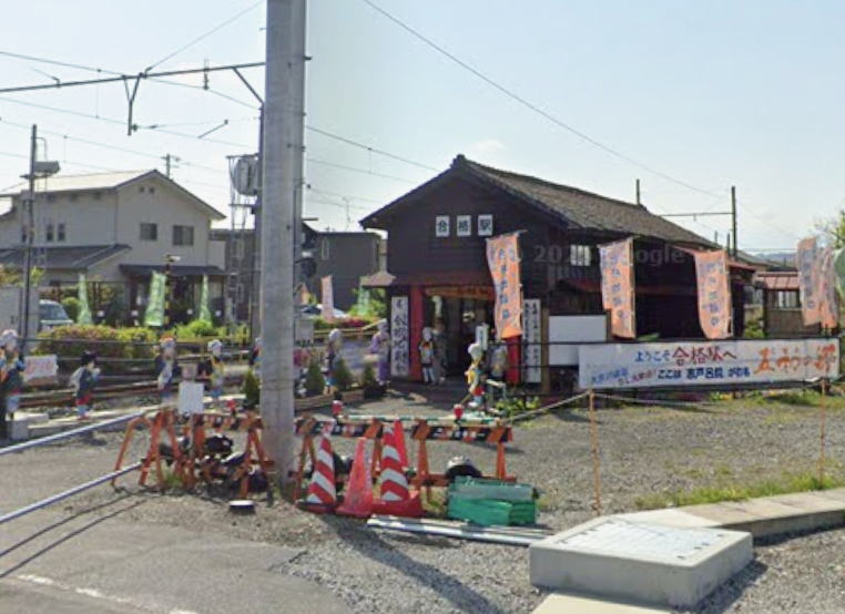 グーグル地図で眺めると、合格駅は縁起担ぎで受験生が来るのだろうか。色々見える。グーグルから転載。通過したときは気がつかなかった。