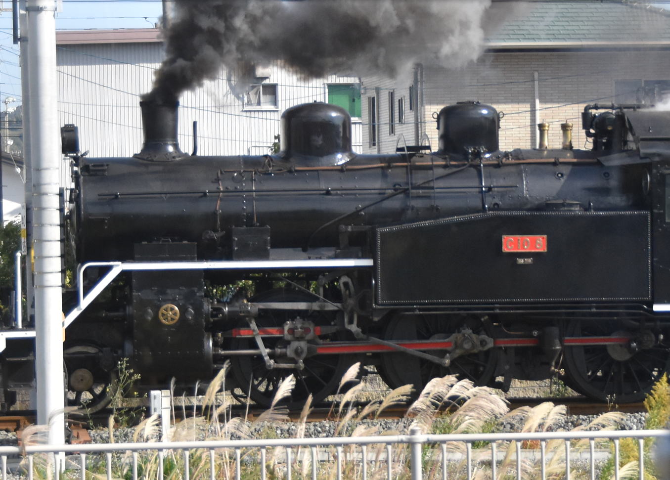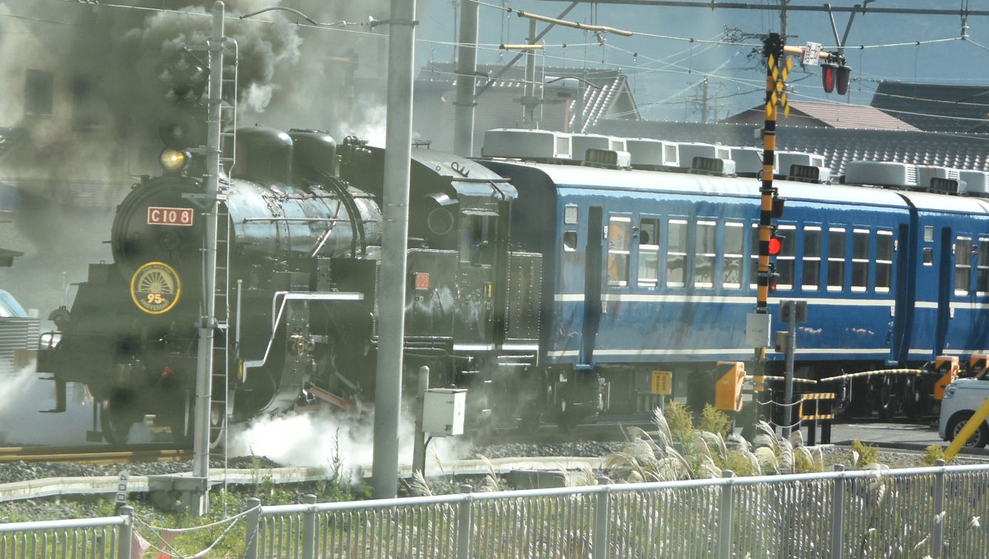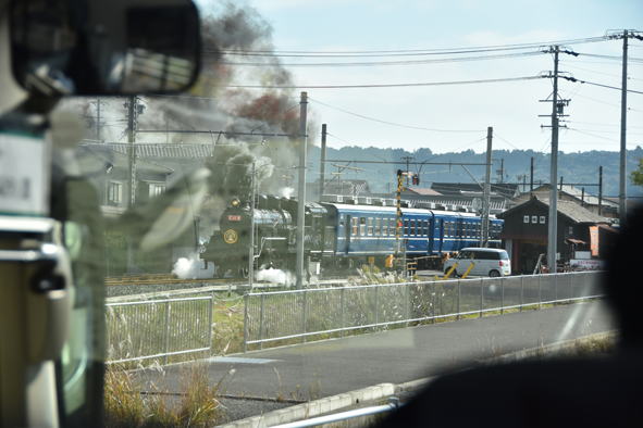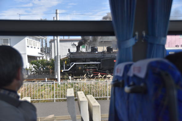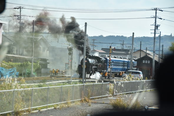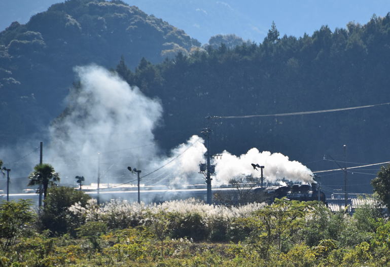 大井川鐵道線路脇の道路を金谷方向へ行く。合格駅近くで蒸気機関車と出会う。12時20分頃でした。