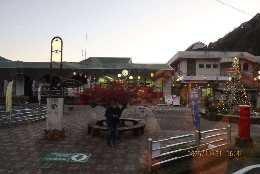 16時45分頃、千頭駅をバスで出発です。 途中のドライブインで夕食を済ませ、ホテルへ向かいます。