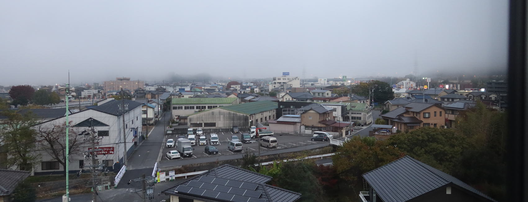 早朝は霧が出て遠くは見晴らしよくありません。