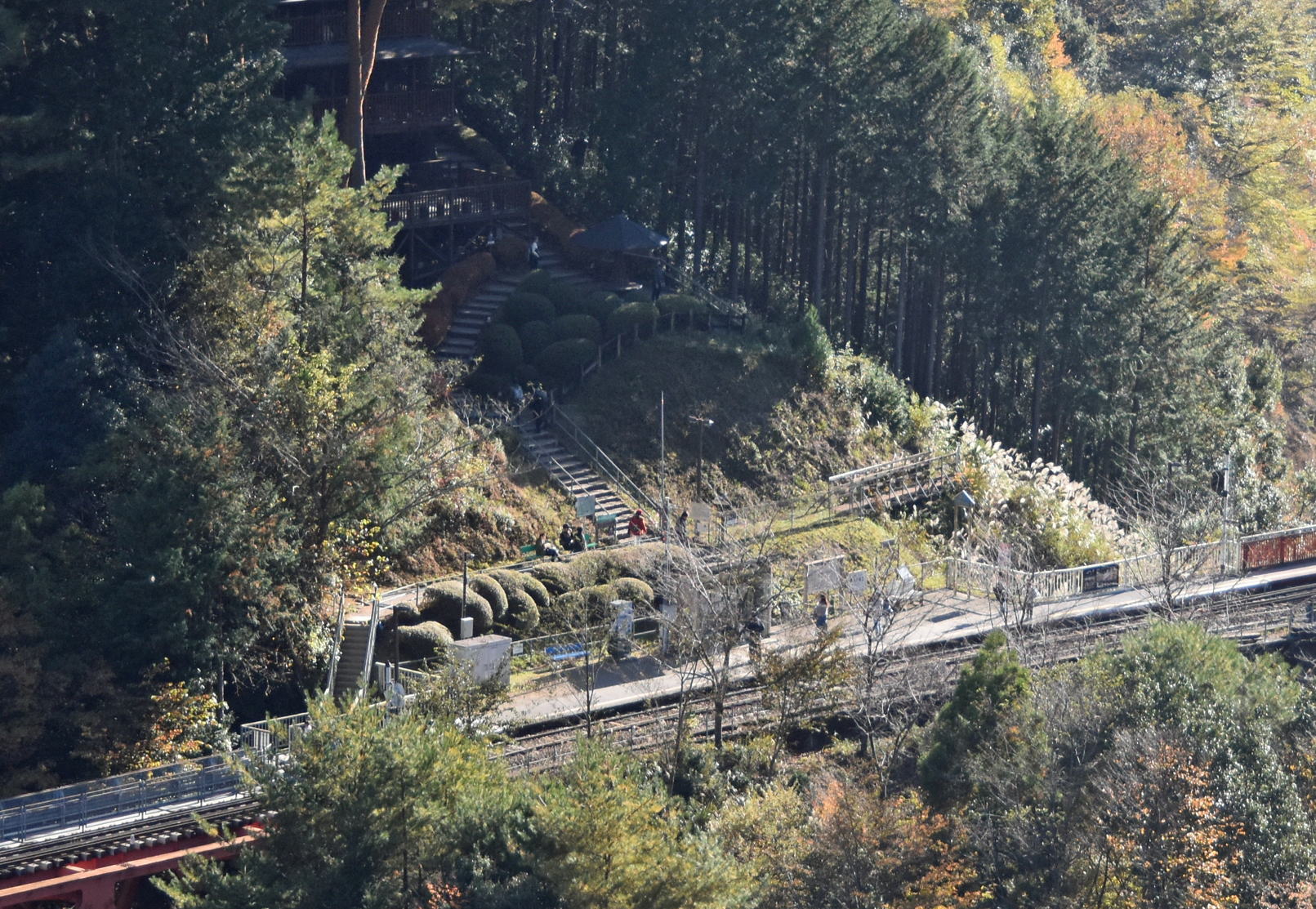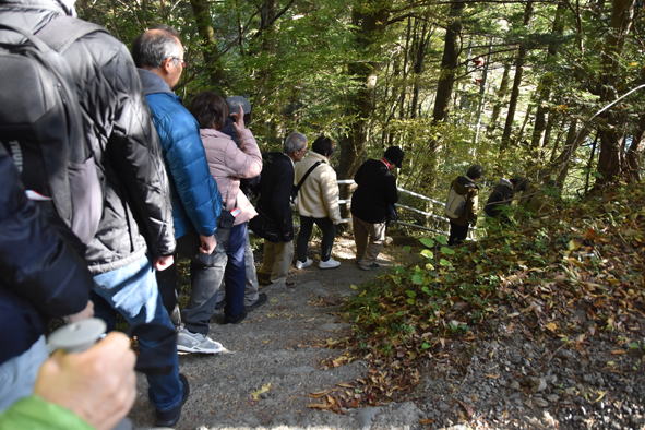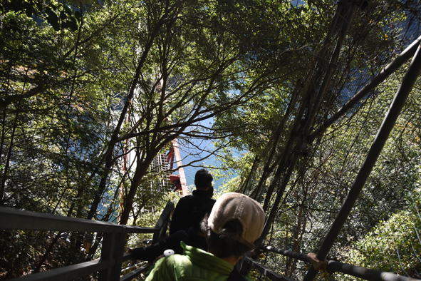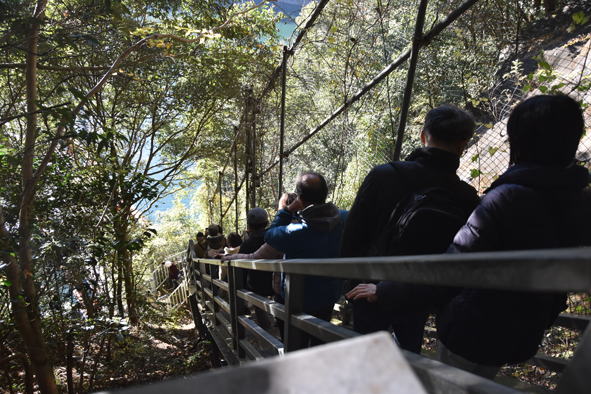 14時20分頃、展望所から湖上駅へ急な階段や坂道を下ります。