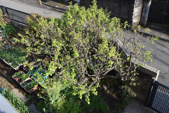 芽キャベツが塔立ちしかかっています。 無花果