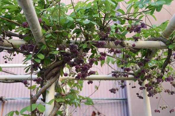 アケビの花も真っ盛り