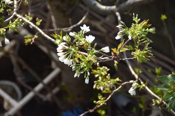 何という木かわかりません。街路樹から落ちた種を10年程前に蒔いたところ花が咲く様になりました。ハクウンボク(白雲木)でしょうか。