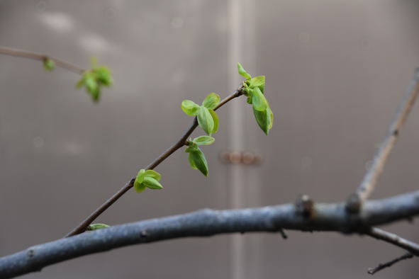 木瓜とアーモンド 山椒も芽が出ています。