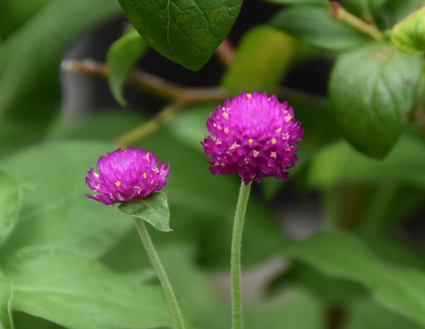 千日紅、今年はほとんどが赤色、白は現在一つだけ。種は白黒、半々蒔いたのですが、どういうことか。