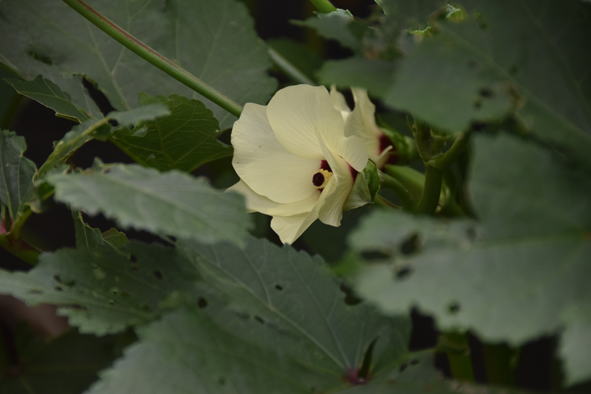 今年は生長が遅れたオクラ、花が本格的に咲き始めました。