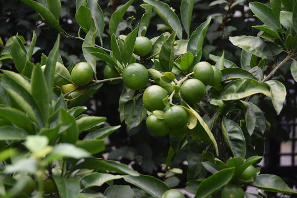 柿はほとんど落ちてしまいました。残りは3個くらいです。 酢橘は沢山実がついています。