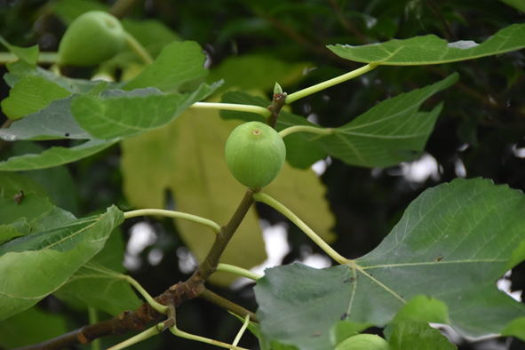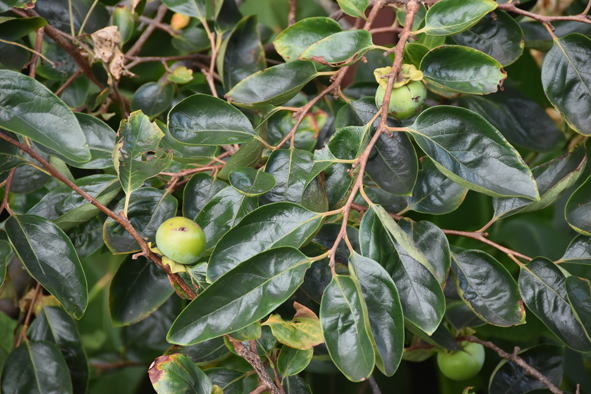 挿し木で育てたイチジク、実が付きました。親の木はカミキリムシに大分やられてしまっています。 柿の実、実が付いています。