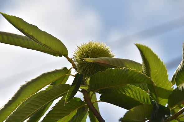 柿は沢山実をつけています。 栗も実は付いていますが、落果するのが多いようで、昨年はすべて落果してしまいました。栗の写真は8月3日撮影