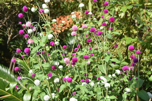千日紅はほとんど赤色だけになってしまいました。また花の大きさも小さくなった感じです。何年間も自家製の種で育てているからでしょうかね。