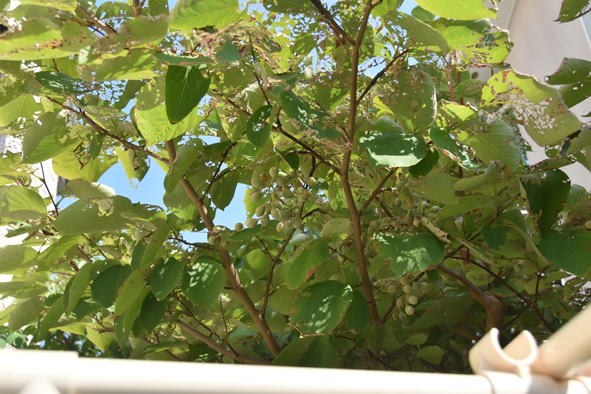 伸びた蔓、垂らしておいたらさらに上に伸び、垂らしたところの葉だけは大きくなっています。
