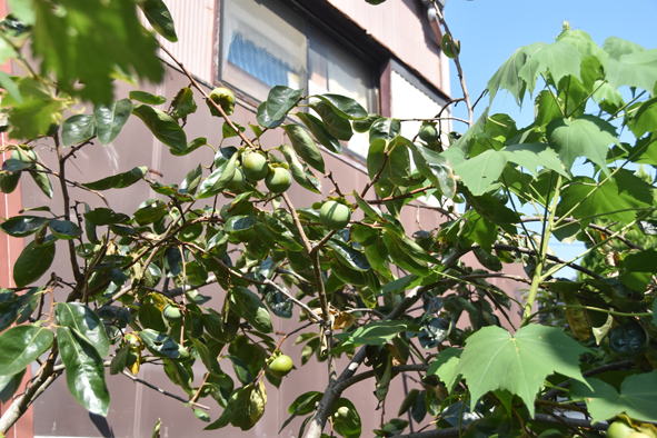 柿の実は沢山付いていますが、小ぶりです。巨峰は今年はハクビシンに食べられて収穫ゼロです。