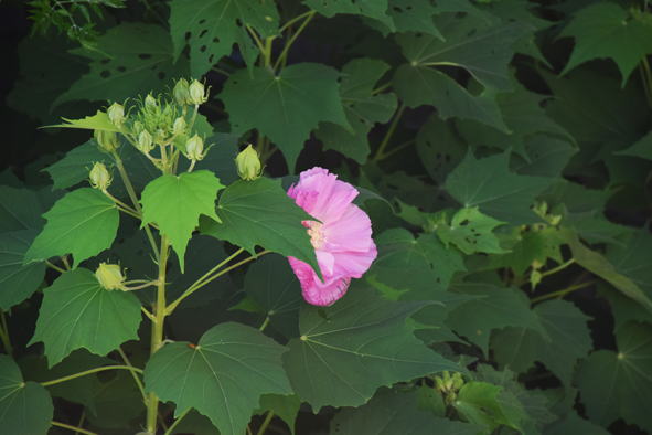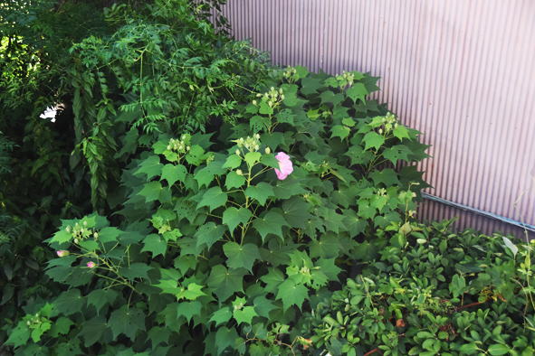芙蓉は背丈は伸びましたが、まだ少ししか咲いていません。