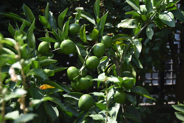 温州蜜柑、小ぶりですが、沢山実が付いています。 酢橘もいくつか実が付いています。