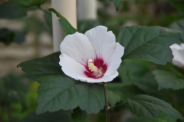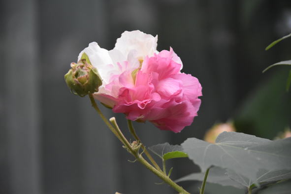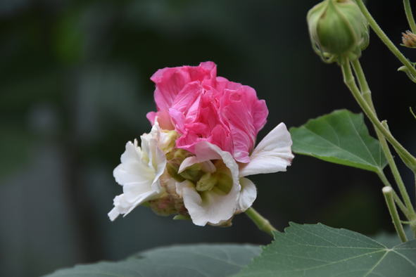 朝からピンクの芙蓉 夕方になっても白い酔芙蓉