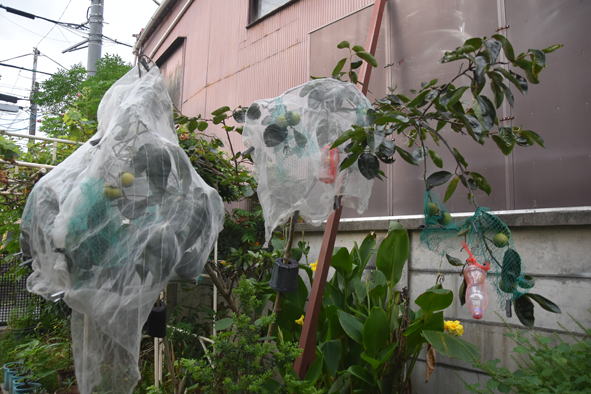 柿は暑さの影響か、皆落ちてしまい、2個だけ残っています。鳥よけにネットの中。昨年は鼠が登って齧られましたが、今年は鼠の被害はこれまでのところありません。