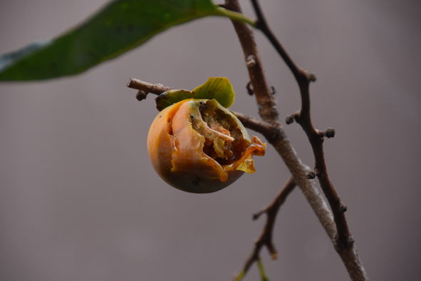 青くても甘みがあるので、少し収穫。 鼠に齧られた柿、腐ってきました。