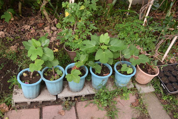 雀が種を食い散らしてしまう千日紅 そろそろおしまいの酔芙蓉