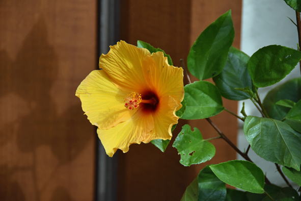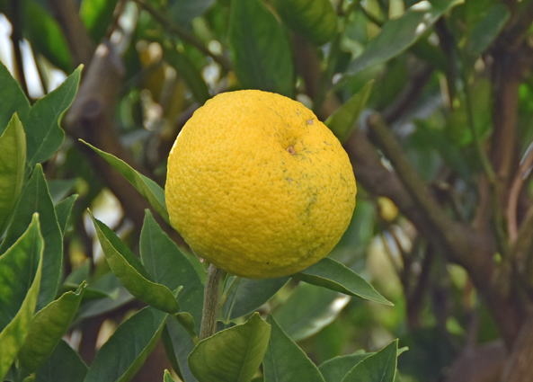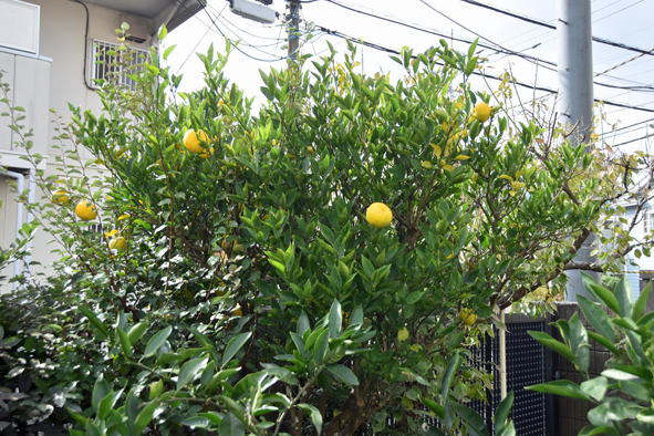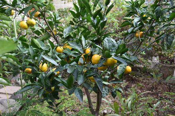 ムクゲは黄色。 今年は酢橘、沢山実をつけました。