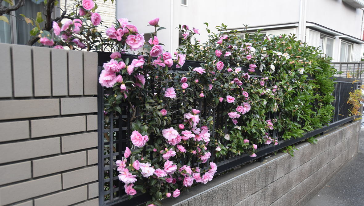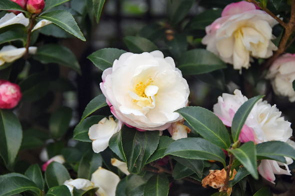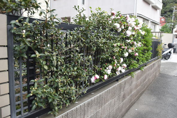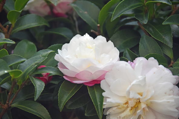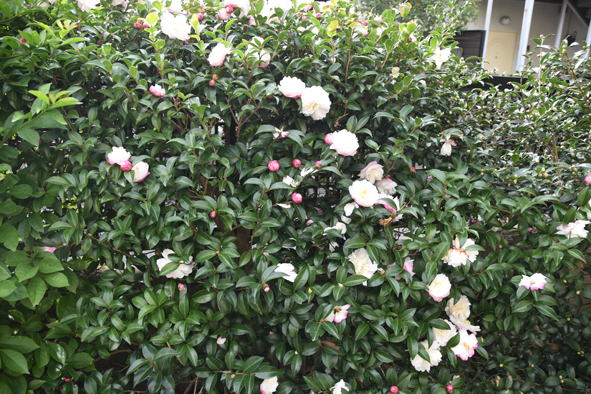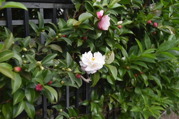サザンカ、白は終了し、ピンクのものが咲き始めました。