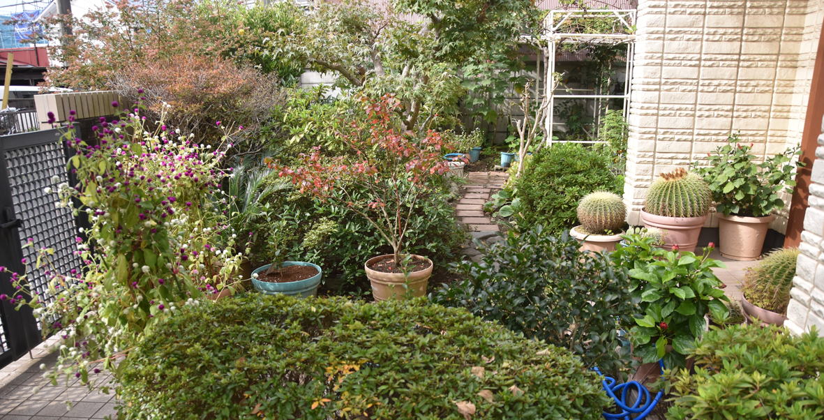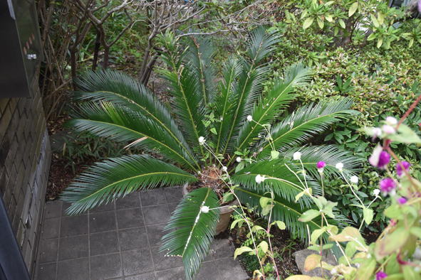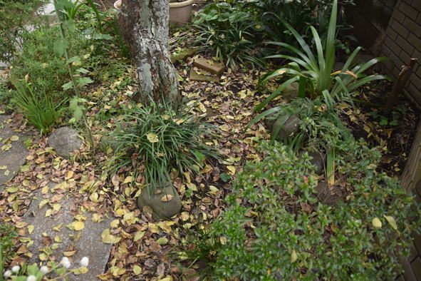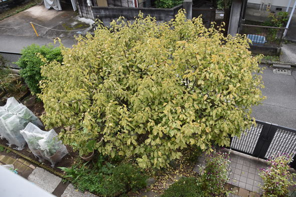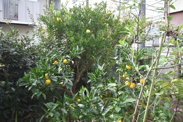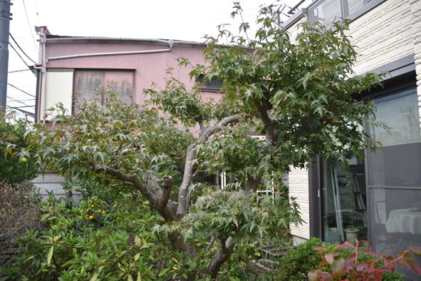 山椒、栴檀、酔芙蓉の枝を切りました。中央の蝋梅にようやく陽があたるようになりました。