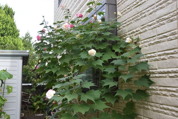 20年以上育っていた石楠花、今年の夏の暑さで1本は枯れてしまった。 千日紅