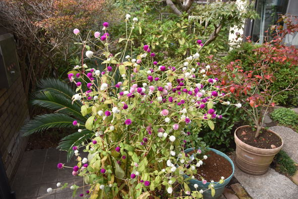 千日紅は枯れかかっている。雀が来ては種を食べていく。