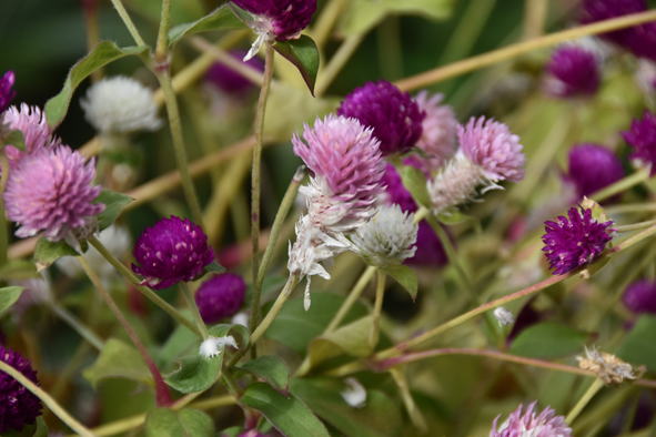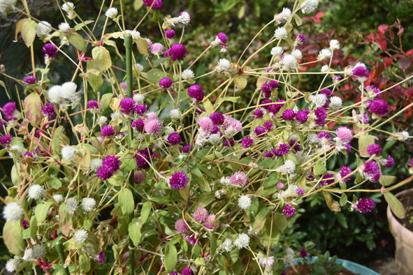 千日紅はそろそろおしまいですが、花は雀が来て種を食べてしまい御覧のような状態です。