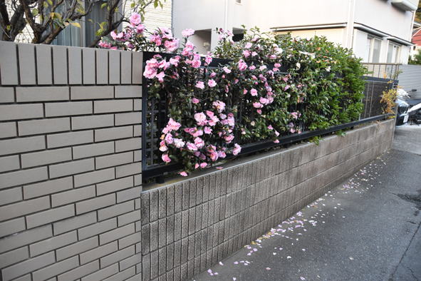 山茶花、ピンクが真っ盛り、白はほぼ終了です。