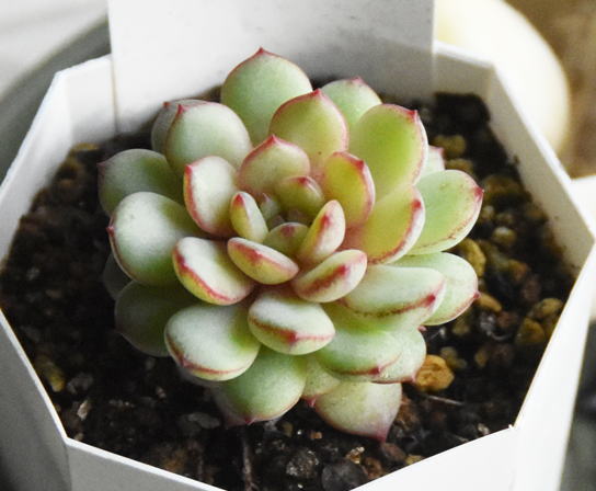 シャコバサボテン、咲いています。 昨日頂いたばかりの亀甲竜、無事にに育つかどうか。