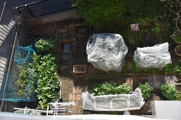 生長中:ミニ白菜、大根、エシャロット、ほうれん草、ニンニク、玉ねぎ、サヤエンドウ、芽キャベツ、蚕豆、カリフラワー