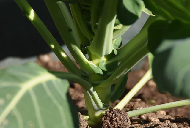 昨年採れた種を蒔いて育てた芽キャベツ、種を蒔く時期が遅かったせいか、育ちが悪く、芽キャベツは出来ていません。ブロッコリーの花から採れた種を育てたら葉ボタンになってしまったことがありました。
