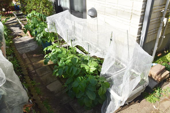 さやえんどうの新芽はヒヨドリが食べてしまうので、ネットを張っています。これで完全に防げているかどうかわかりませんが、今年は被害を見かけません。