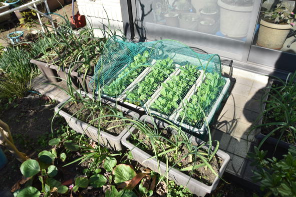 ホウレンソウは深い鉢が良さそうです。小松菜は浅い鉢でも成功しますが、今年は例年より成長が早く、正月用に植えたものがだいぶ前に収穫期となってしまいました。