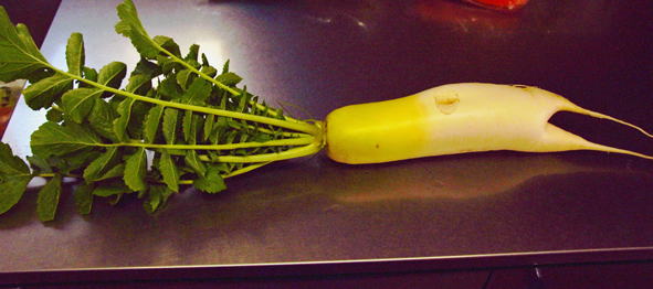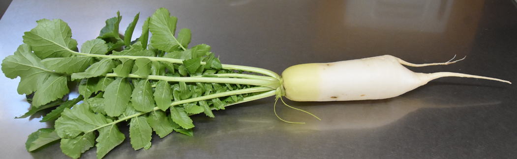 間引いたダイコンとその葉、この冬は大根の出来がよくない。
