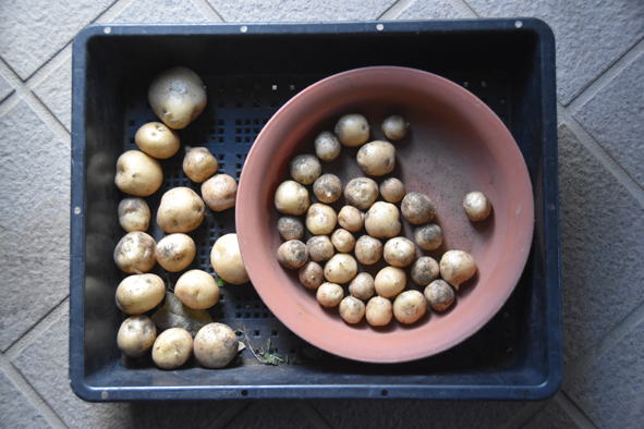 秋、10月7日に植え付けたジャガイモ、収穫しました。
