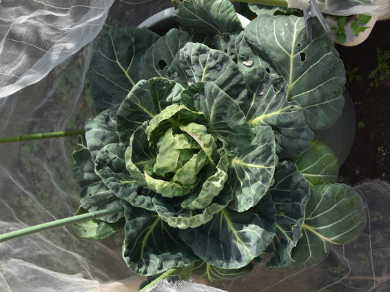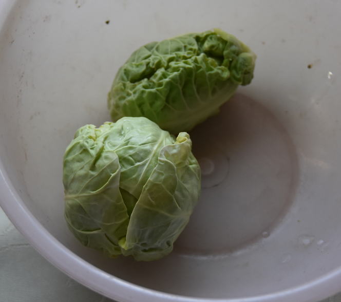 収穫中:ミニ白菜、九条ネギ、芽キャベツ、