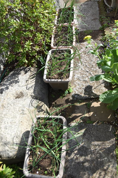 生長中:ニンニク、玉ねぎ、蚕豆、小松菜、エシャロット、苺、アスパラガス(土の中)、ミョウガ(土の中)