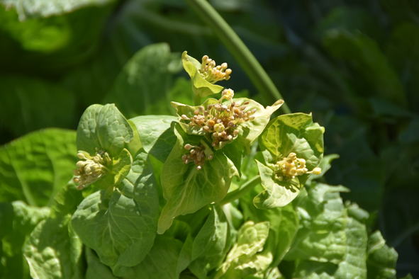 結球しなかったミニ白菜、放置していて葉をほとんどヒヨドリに食べられてしまいましたが、花を咲かせています。