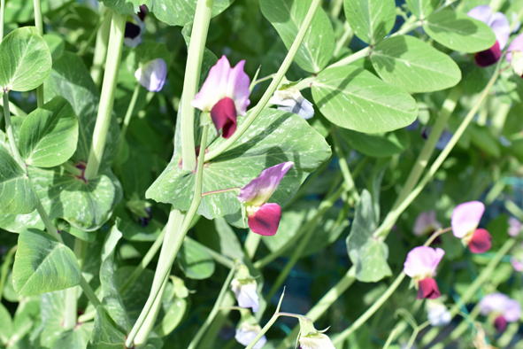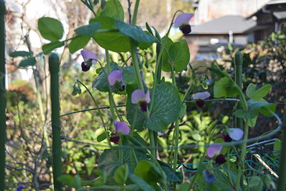 蚕豆、サヤエンドウの花、大分前から咲いています。