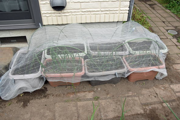 小松菜、こちらのネットは蝶々除けに必要 玉ねぎ