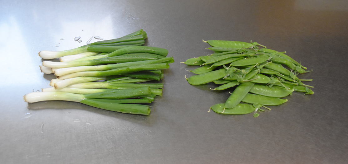 今年初めてのサヤエンドウ、スナップエンドウも混ざっています。