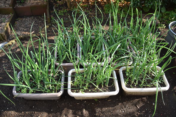 ニンニク、大分太くなっています。 分葱は時々収穫です。