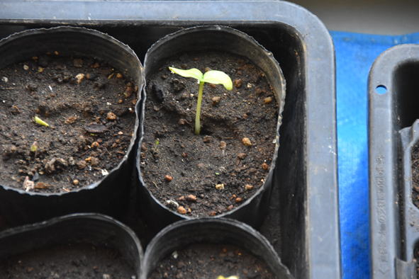 インゲン、小松菜、胡瓜が芽を出しています。胡瓜は時期的には外で育てるのが若干早いかもしれません。