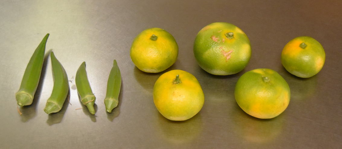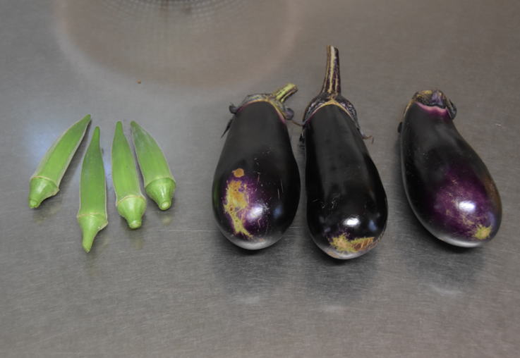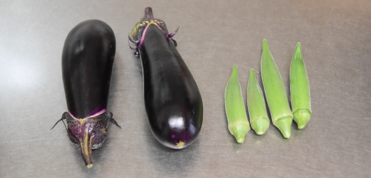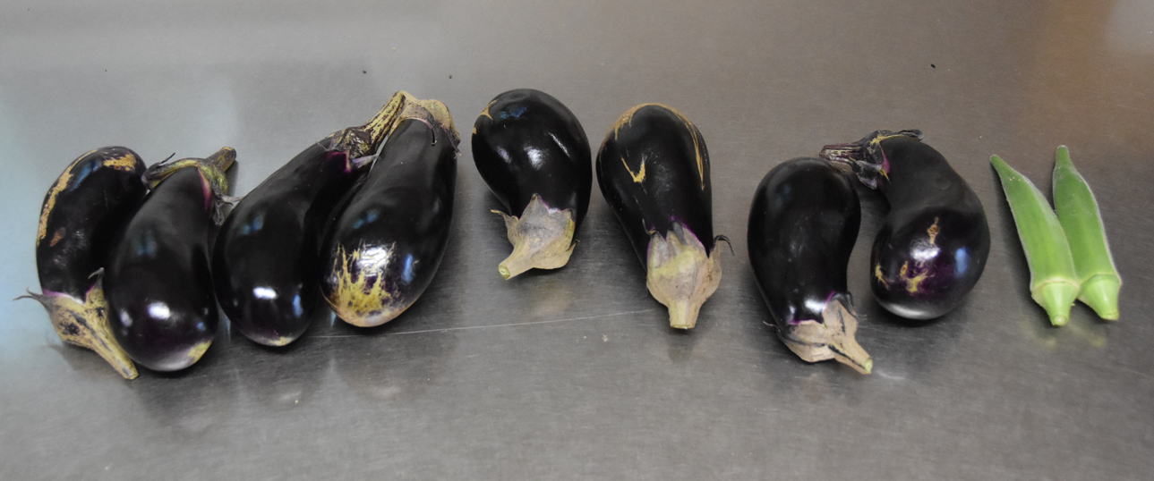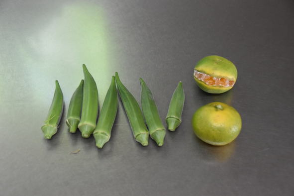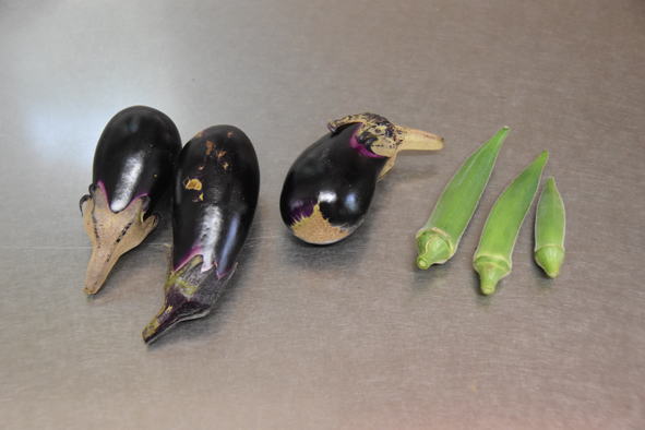 収穫中:オクラ、